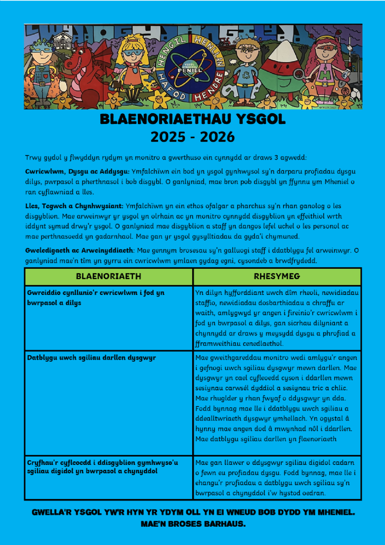 Mae’n ofynniad statudol arnom i bennu TARGEDAU blynyddol y dylid ceisio ymgyrraedd tuag atynt: