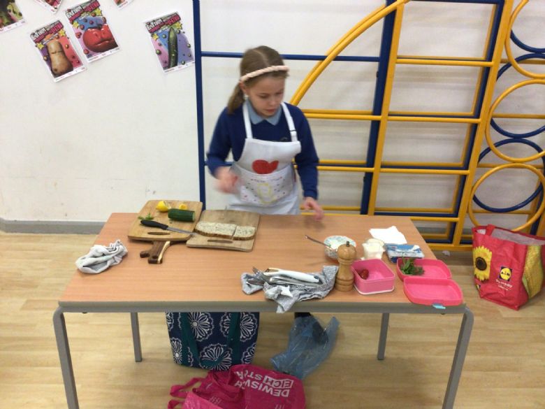 Cydweithio gyda dosbarth Hedyn i greu, blasu a gwerthu Smwddis blasus iawn i rieni a ffrindiau'r ysgol yn ein Stondin Smwddis.