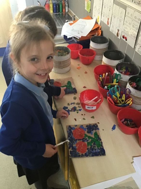 Gludwaith gwych! Y plant wedi mwynhau datblygu sgiliau torri, gludo, gwasgu, crychu, paentio a mowldio!